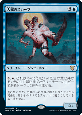 - 能力:「あなたがクリーチャー・カード1枚を捨てるたび、{2}{U} を支払ってもよい。そうしたなら、黒の 4/4 ゾンビ・トークン1体をタップ状態で生成。このトークンはそのカードのコピーだが、『ゾンビ』であることと 4/4 であることを除き、元のカードの特徴を持つ。」 という非常に強力な “捨て → トークン生成” 能力を持つ。